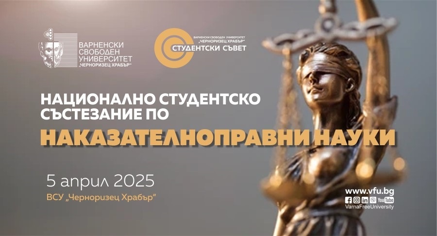 12 отбора от шест университета в страната потвърдиха участието си в Националното студентско състезание по наказателноправни науки. Събитието ще се проведе във Варненския свободен университет на 5 април 2025 г. – в навечерието на Деня на Конституцията. Организатори са Клубът на юриста „Проф. Тамара Хинова“ към Студентския съвет и Юридическият факултет на ВСУ „Черноризец Храбър“.