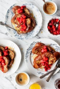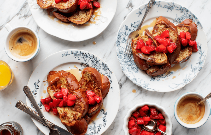 Пържените филийки са неразделна част от менюто на българина от дълго време, но ние ще ви предложим един по-различен вариант. За целта са ви нужни: яйца и бадемово мляко, канела и кардамон, щипка морска сол, дебели резени хляб (чабата или хала), кленов сироп и топинг с пресни плодове. Начин на приготвяне
