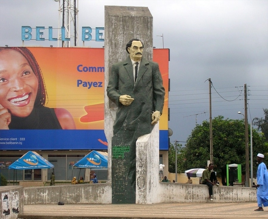 Странно и почти сюрреалистично паметник на първия комунистически лидер в България – Георги Димитров, стои сред оживено кръгово кръстовище в Котону, най-големият град на западноафриканската държава Бенин. Паметникът, ярко изрисуван и с внушителни размери, доминира на кръстовището, което е наречено Place de Bulgarie, или площад България.
