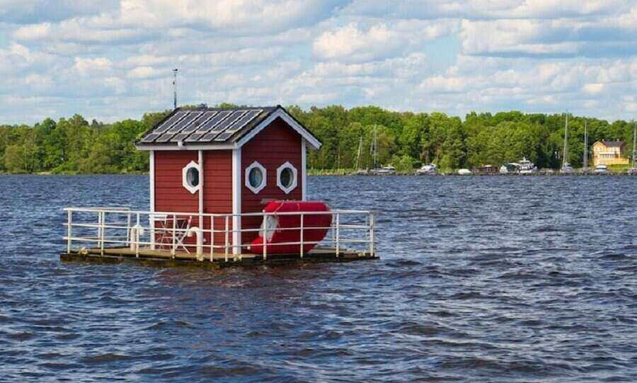 Искате да спите под вода, но не можете да си позволите висока цена? Тази старомодна подводна кабина в Швеция може да е идеалното решение. Utter Inn е проектиран от местен художник и макар да изглежда като типична шведска къща, плаваща върху вода, всъщност има малка спалня, потънала на около 10 фута (3 метра) под повърхността. Без излишни шумове, това е страхотно бягство за уикенда само за 250 долара на вечер.