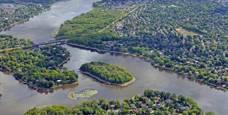 Близо до мястото, където се срещат реките Отава и Сейнт Лорънс, малък остров, гъмжащ от птици и костенурки, прилича на малко зелено кътче от Рая, заобиколено от бетонни стени.
