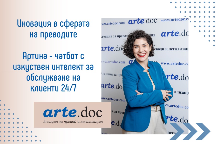 Артина е нашият чатбот с изкуствен интелект, за обслужване на клиенти в преводаческата сфера. Тя е и пореден пример за отдадеността на агенция за преводи Арте.Док към иновациите и към улесняването на клиентите ни.