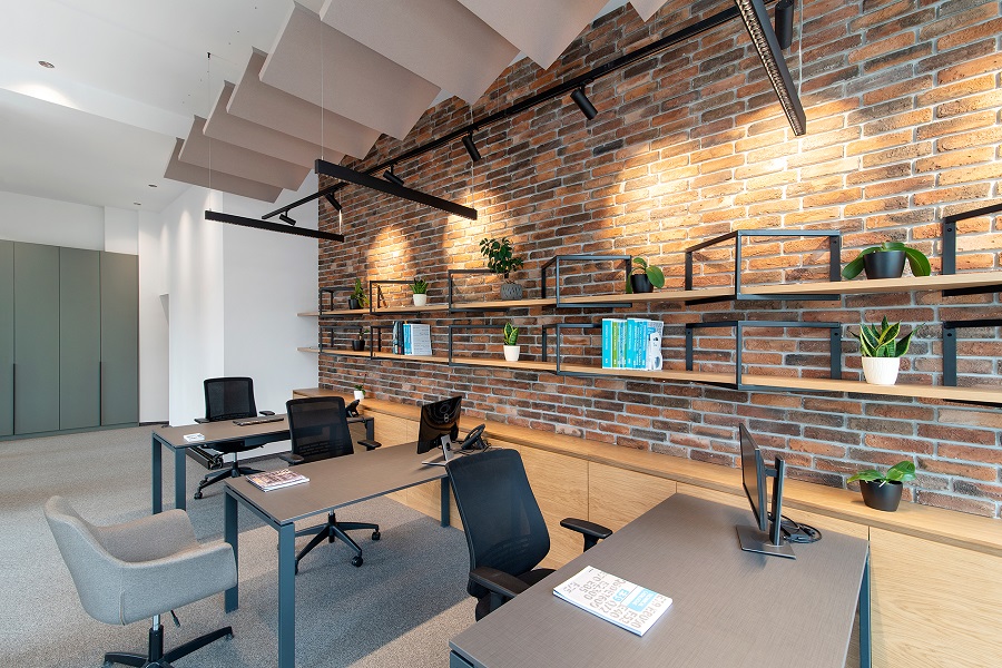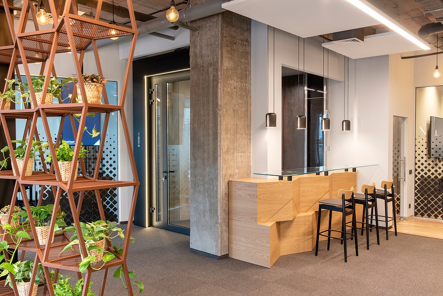 Да, имам. В шоурума в София по-голямото пространство беше съзнателно фрагментирано на отделни мострени зони, акцентирани с два идентични скулптурни обема от светъл дъб – рецепция и бар. Тяхната монолитност се компенсира от ажурни етажерки от ръждив метал с естествено озеленяване, дефиниращи зоната за презентации. Диалогът и контрастът между тези два формуобразуващи елемента динамизира пространството и мисля, че връзката между тях е основополагащ за общата атмосфера в пространството.