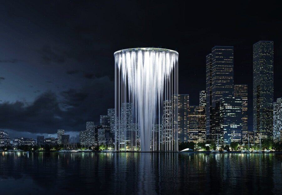 Тази забележителност със сигурност привлича вниманието. Някой я определят като футуристичен, въздушен град от бъдещето, други като магически фонтан, спускащ се от небето … каквото и определение да и бъде дадено, едно е сигурно – тя няма как да остане незабелязана.