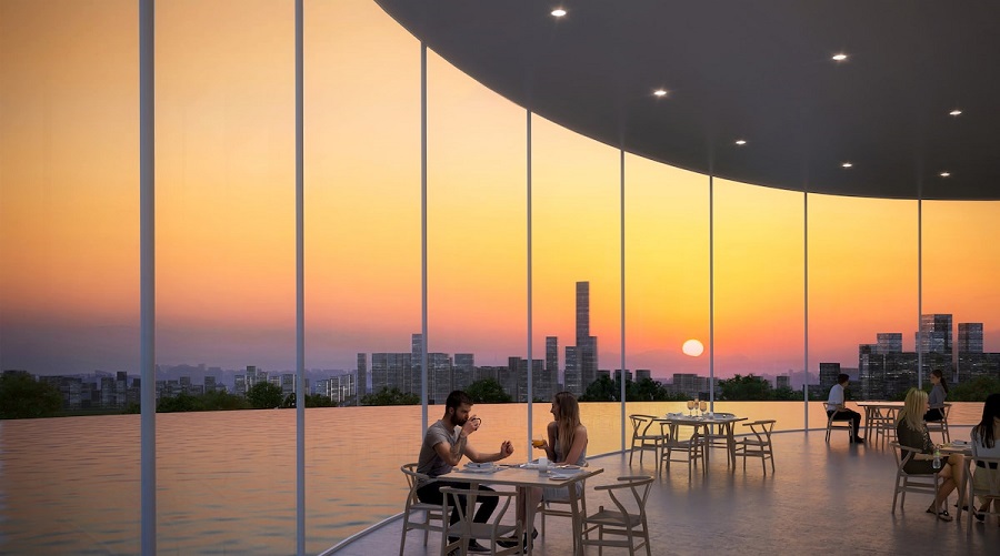 На върха на кулата, посетителите могат да се насладят на изложбено пространство, ресторант, кафене и платформа за гледане.