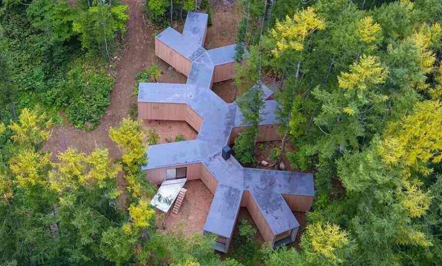 Разположена в гората на Хокайдо, Япония, Къщата в гората предлага красиви гледки към природния свят чрез оформяне на перспективите на околната зеленина. Florian Busch Architects обясняват, че дизайнът „не е за фиксирана форма, а за непрекъснат диалог с гората“. Този проект е разработен за клиенти, които искат да създадат свое уникално естествено отстъпление, което да им позволи да се доближат един до друг и до природата.