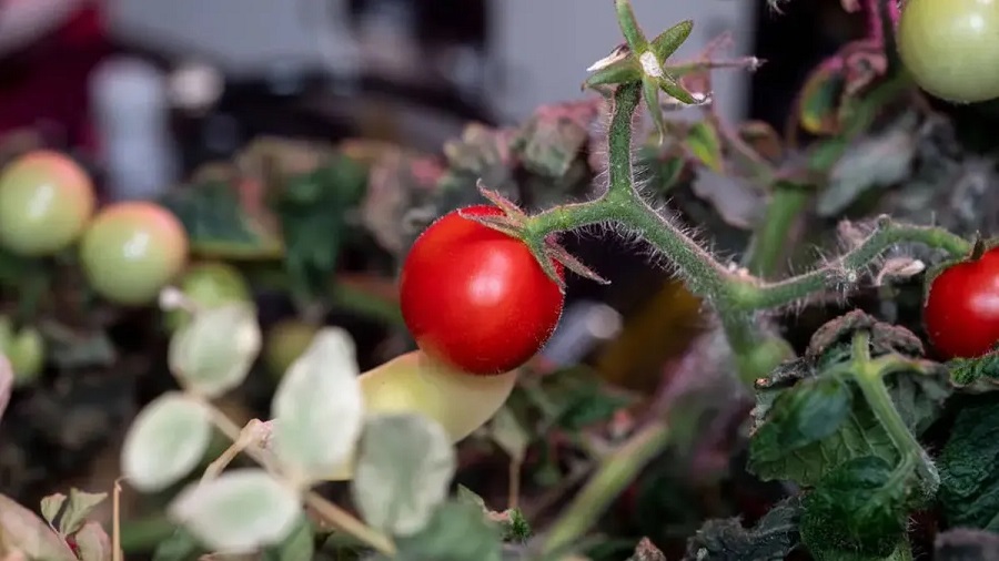 „Разследването използва хидропонни (на водна основа) и аеропонни (на въздушна основа) техники, а не почва или друга традиционна среда за растеж, за да завърши жизнения цикъл на доматените растения“, казва НАСА.