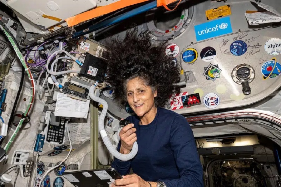 Въпреки това забавяне астронавтите ветерани все още се наслаждават на празничното настроение. На празничен портрет, споделен от НАСА, Уилямс и Уилмор носят шапки на Дядо Коледа, докато говорят по радиостанция в лабораторния модул „Колумб“.