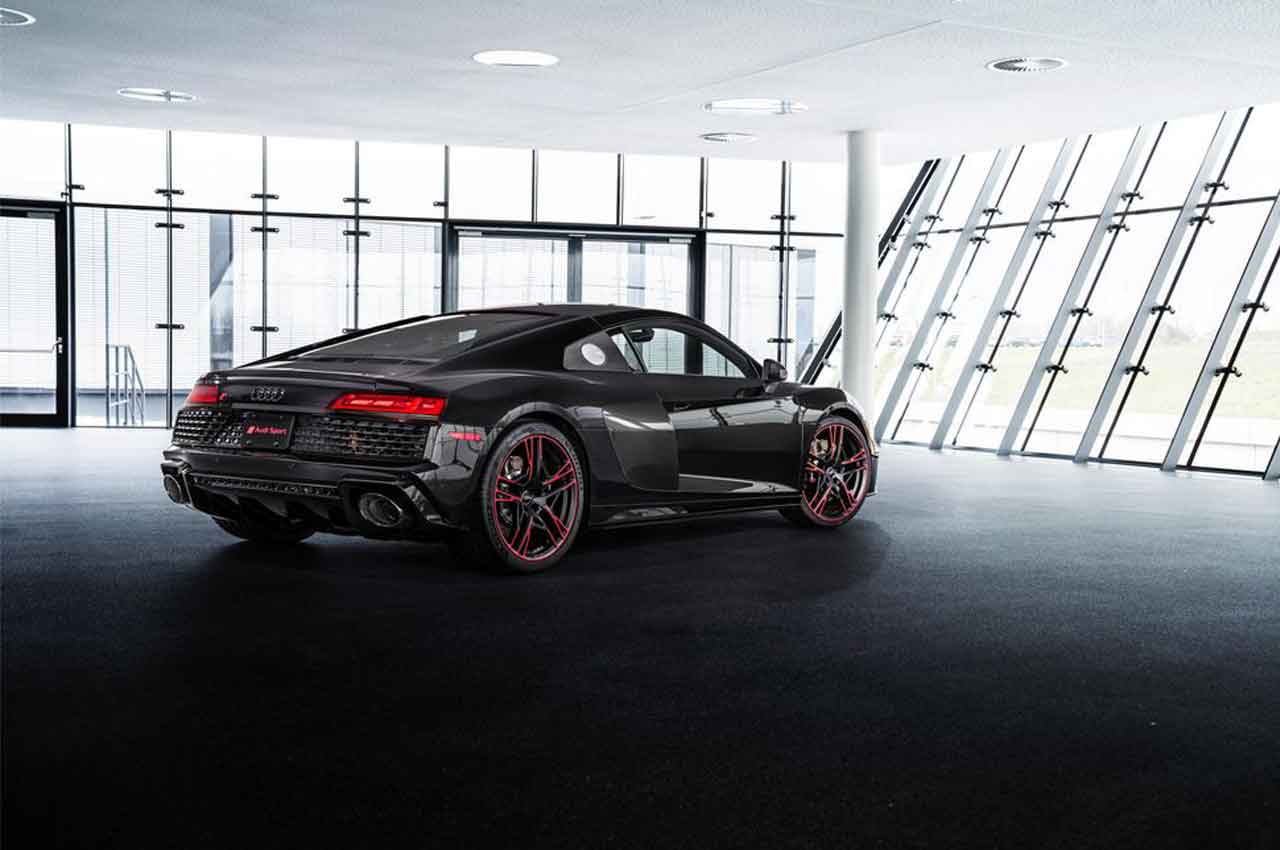 R8 Panther Edition, който се предлага на модела със задно задвижване, е завършен в ексклузивната боя с кристален ефект Panther Black с огледала от въглеродни влакна, отделение на двигателя и странични всмукателни дюзи, както и затъмнени емблеми на Audi. Той е разположен на 20-инчово матово черно с яркочервени джанти с пет двойни спици, обвити с гуми Michelin Pilot Sport 4 S. Дали тези джанти изглеждат добре е въпрос на личен вкус. Но нас определено ни харесват.