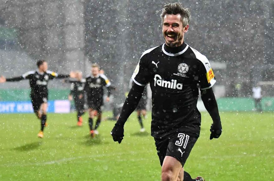 Така след безголови продължения се стигна до дузпи. Първите 10 дузпи бяха безответни, но вратарят на Киел Кил Йоанис Гелиос спря удара на Марк Рота, а ветеранът Бартелс отбеляза победния удар за отбора от второто ниво на Германия.