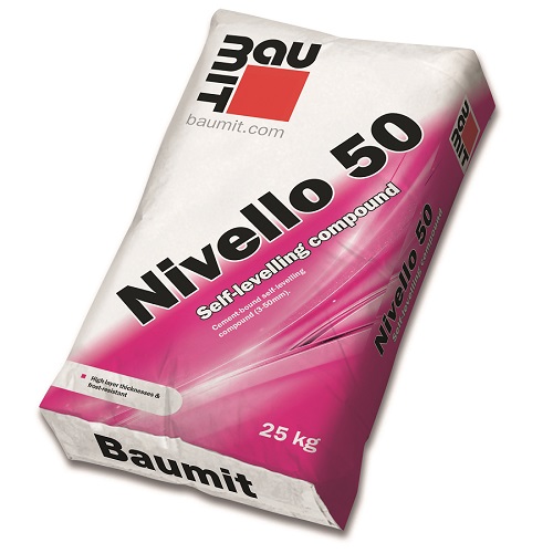 Такъв продукт се явява Баумит Нивело 50 – фабрично приготвена, саморазливна, прахообразна нивелираща смес на циментова основа, която създава равни и хомогенни повърхности. Продуктът много лесна за обработва, и е мразоустойчив. Нивело 50 е с отлични изравняващи и повърхностни свойства, с много бързо втвърдяване и изсъхване.