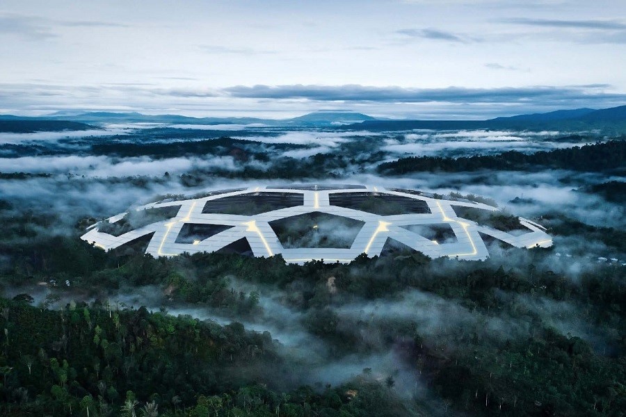 Повдигнатият купол, базиран на шестоъгълна и петоъгълна мрежа, е вдъхновен от защитата, която природата предоставя. Дебелината на купола всъщност му позволява да се превърне във функционална сграда, размивайки границите между архитектура и инженерство. Мрежата помага за определяне на зони, свързващи инфраструктура и зелени площи.