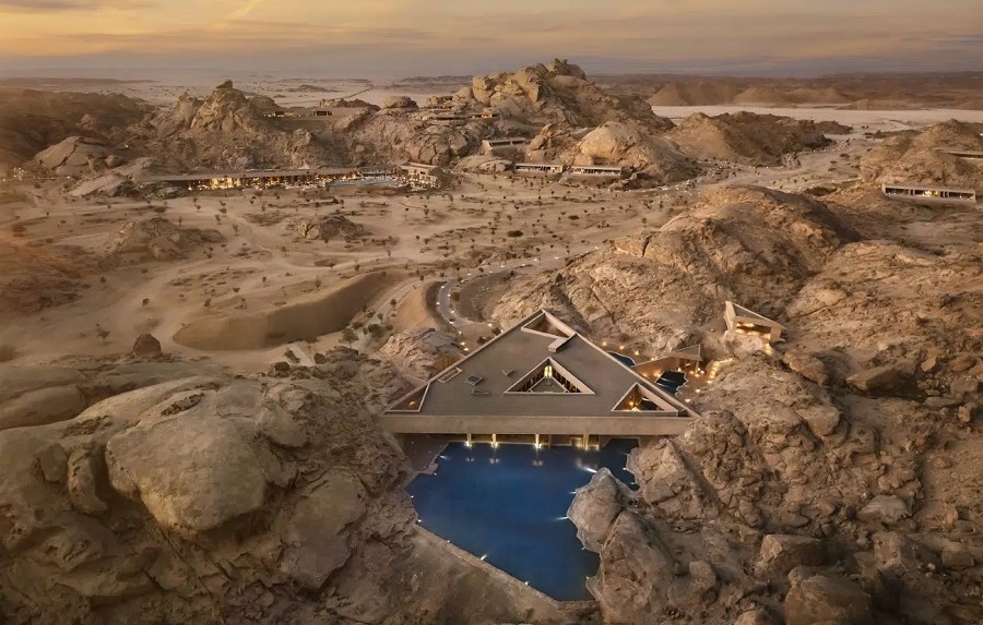 Историческите планини Хиджаз в Саудитска Арабия стават дом на спиращ дъха луксозен курорт, който напълно се слива със заобикалящия го пейзаж. Изсечен директно в скалите, курортът Desert Rock е дело на архитектурният център Oppenheim Architecture и отдава почит на местната архитектура.