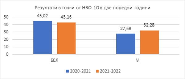 Десетокласниците подобряват резултатите си по математика в сравнение с миналата година. На националното външно оценяване през този месец те имат средно 32,28 точки от максимум 100, а през 2021 г. резултатът беше 27,68 точки от 100. В това изчисление не се включват допълнителните 4 точки, които някои ученици получават заради липсващите скоби в част от помощните формули за изпита.