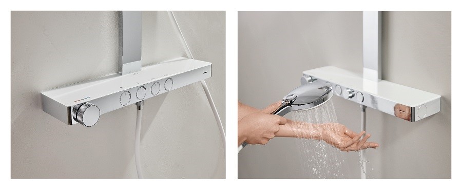 Новата свободностояща душ система превръща банята в освежаващ личен СПА център и впечатлява със своя изчистен, минималистичен дизайн. Тя включва иновативен филтър, дискретно вграден в термостата, който пречиства водата в ръчния душ от хлор и миризми, като прави водата по-нежна към кожата и косата и създава усещане за истинско благополучие.