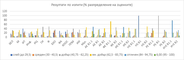 Резултатите от задължителните държавни зрелостни изпити по български език и литература и по профилиращи предмети, както и от матурите по желание по общообразователни и по профилиращи предмети можете да видите ТУК.
