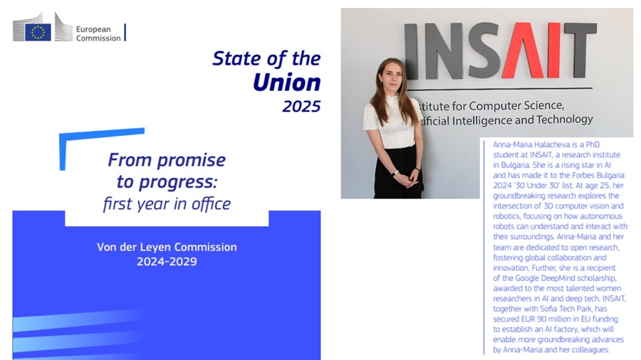 Анна-Мария Халачева, докторант в Института за компютърни науки, изкуствен интелект и технологии (INSAIT) към Софийския университет „Св. Климент Охридски“, беше посочена от Европейската комисия като един от примерите за успешни млади европейци.