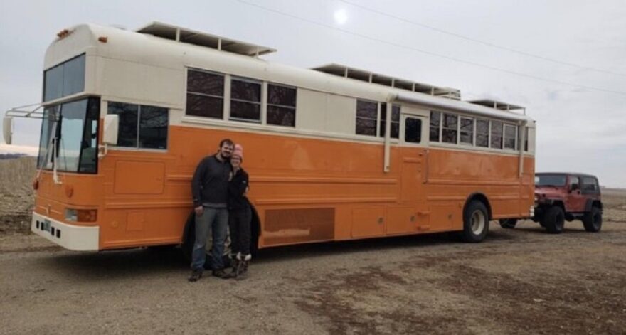 Училищните автобуси са по-евтини от истинските мобилни домове и осигуряват повече пространство за двамата съпрузи, всеки от които има нужда от собствен офис.