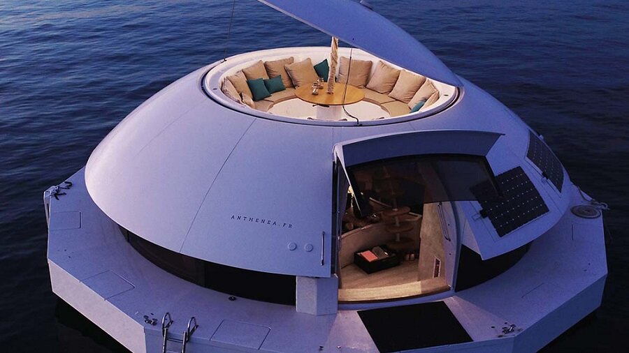 Нов луксозен, екологичен плаващ оазис може да се появи навсякъде – където има вода и Anthénea намери мястото за привлекателно. След разкриването на прототипа през 2019 г., френската компания обяви, че ще пусне първите си куполовидни апартаменти в началото на следващата година.