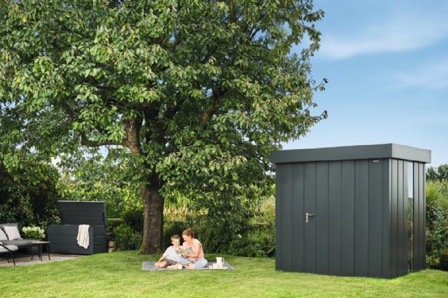 Освен това не се нуждаят от поддръжка и имат дълъг живот. Могат да бъдат допълвани с практични аксесоари. В акцията са включени също и градинската къщичка Juno с плосък покрив и градинската ракла Juno в два модерни цвята – естествено отново неутрални за климата.