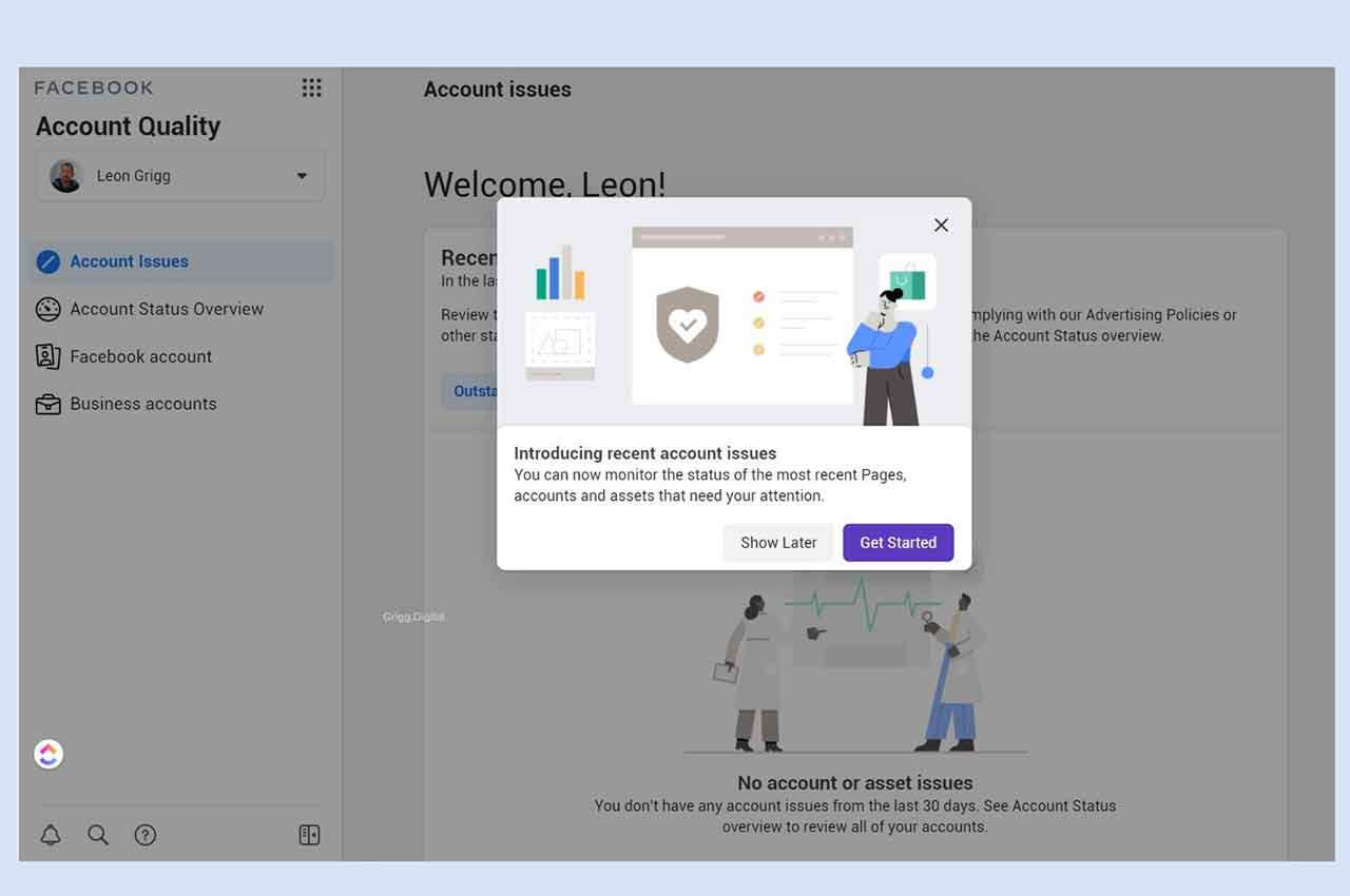Както можете да видите в публикацията от експертът по социални медии Леон Григ, новото табло за управление предоставя преглед на всички проблеми с вашия акаунт, които биха могли да повлияят на ефективността му.