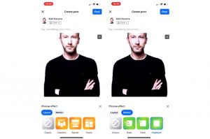Както можете да видите от снимките, споделени от експерта по социални медии Мат Навара, новите опции предоставят два набора инструменти за визуални ефекти при качването на статични изображения:
