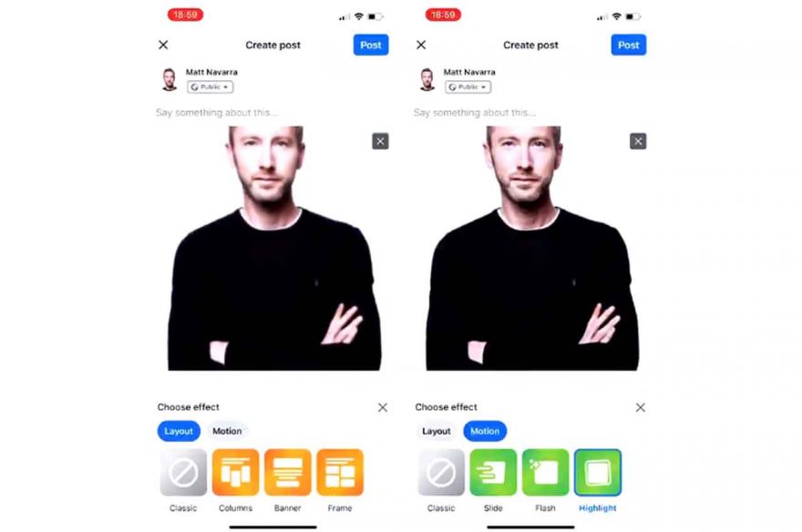Here’s how Facebook’s new ‘motion effects’ feature for photo posts works… pic.twitter.com/FHqpOBbhsO