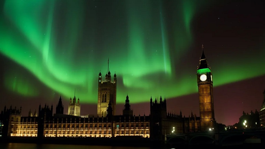 Това е последвано от поредица от изображения на полярни сияния, забелязани над известни забележителности в САЩ, Обединеното кралство, Европа, както и Австралия, както и щети на енергийната инфраструктура и отговор на събитието.