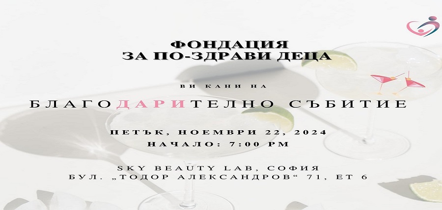 За втора поредна година, фондация „За по-здрави деца“ кани своите благодетели, партньори, съмишленици и приятели, на събитие, на което да сподели постигнатото през годината и да изрази своята благодарност към благодетелите, които подкрепят мисията ни да бъдем промяната, която искаме за нашите деца.