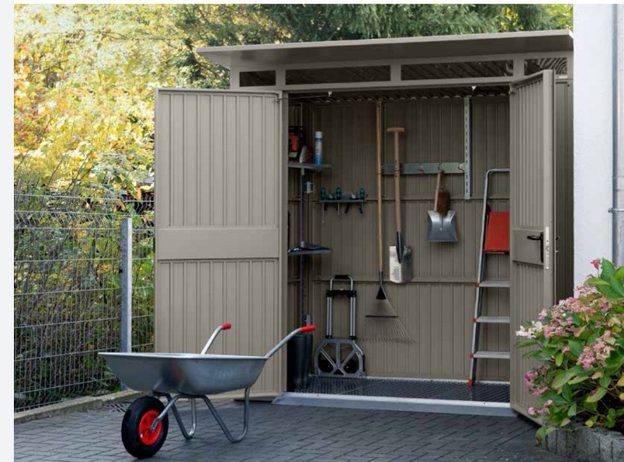 Къщичките за градински инструменти се предлагат в два варианта – Modern с широка ламела и елегантен външен вид и Classic с тясна ламела – с неподвластен на времето дизайн и стил.