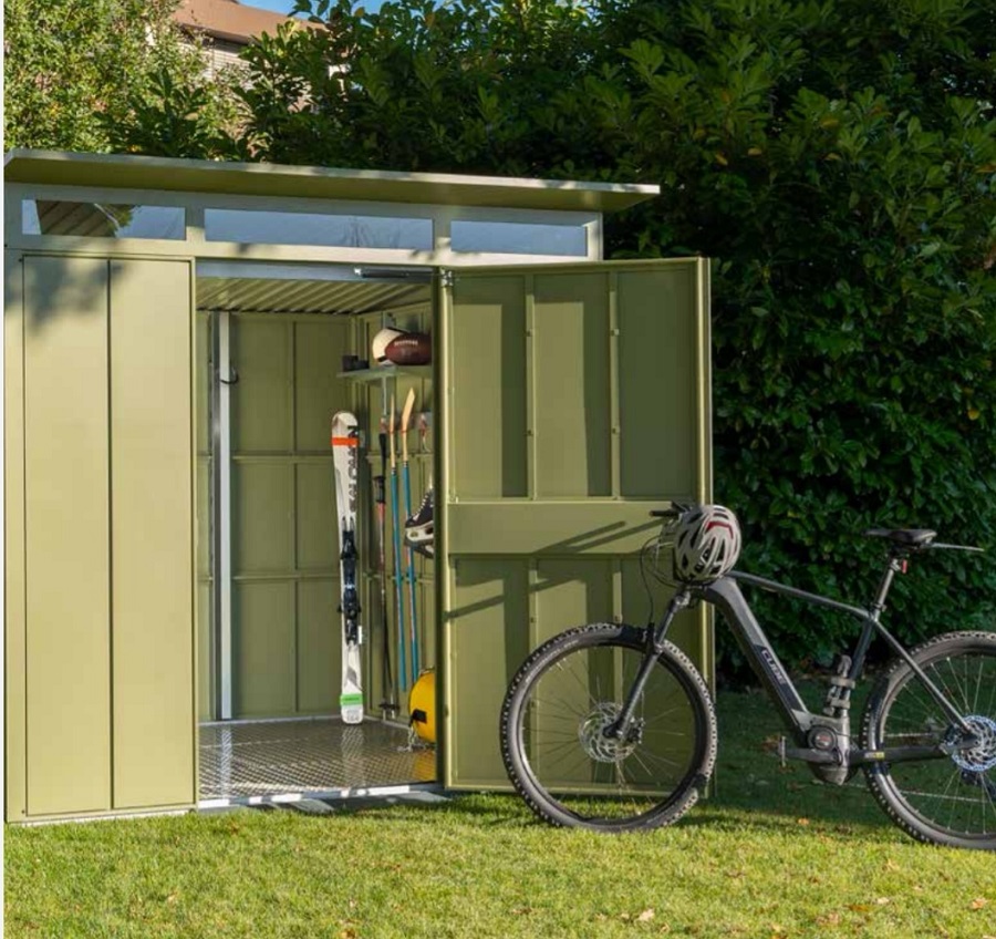 Могат да бъдат с едноскатен или двускатен покрив. Стандартно при едноскатният се включват и прозорци от акрилно стъкло, които осигуряват дневна светлина и не е нужно допълнително осветление. В зависимост от размерите биват 3 типа, като колкото по-голям е размерът, толкова повече или едрогабаритни градински машини и/или велосипеди могат да се приютяват вътре.