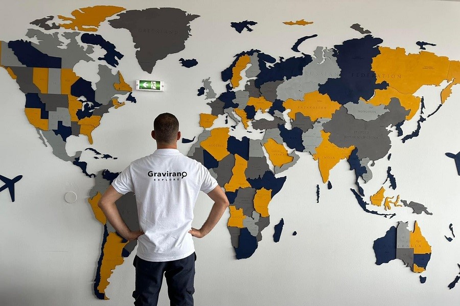 Те съчетават най-съвременните технологии с висококачествени материали и прецизна изработка, за да се превърнат в оригинално интериорно решение за всеки дом, офис или хотел. Миналата година Gravirano Explore произвежда по поръчка на една от водещите авиокомпании най-голямата карта на света, правена до момента, с впечатляващите размери 450×275 см.