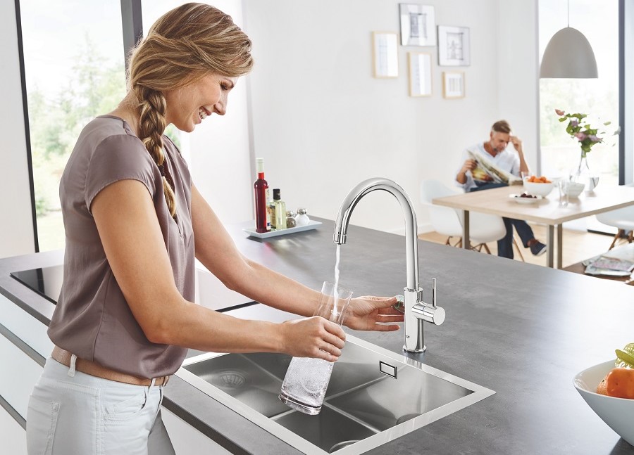 Когато става въпрос за храна, повечето потребители избират местната продукция, защото е по-свежият и устойчив избор. Същото се отнася и за водата, която пием, но това често бива оставяно на заден план, когато става въпрос за по-устойчив начин на живот. Преминаването към пречистена чешмяна вода е важна промяна: На една ръка разстояние, директно от смесителя в кухнята ви. Това позволява по-природосъобразен начин на живот, отстранявайки необходимостта от транспорт, пластмасови бутилки, разходки до магазина и пренасяне на тежки туби. А ако предпочитаната напитка е газирана вода – изберете GROHE Blue Home. Водната система филтрира чешмяната вода и променя вкуса й според вашите лични предпочитания: обикновена охладена, слабо или силно газирана – а управлението е лесно и интуитивно, благодарение на удобен тъч бутон.