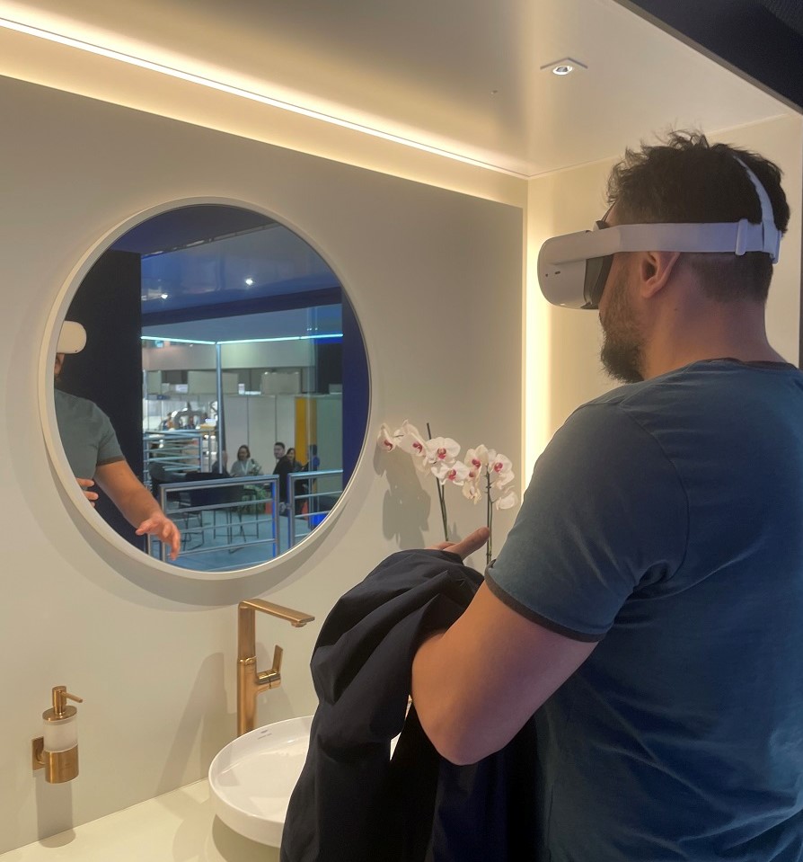 Със специални 360° виртуални стаи посетителите могат да разгледат продуктите на GROHE в различна среда чрез очила за виртуална реалност. VR очилата позволяват интерактивно навигиране в различните пространства с поглед, за да отрие всеки своето вдъхновение. Интерактивната презентация подканва посетителите да се поинтересуват и докоснат до същността на марката.