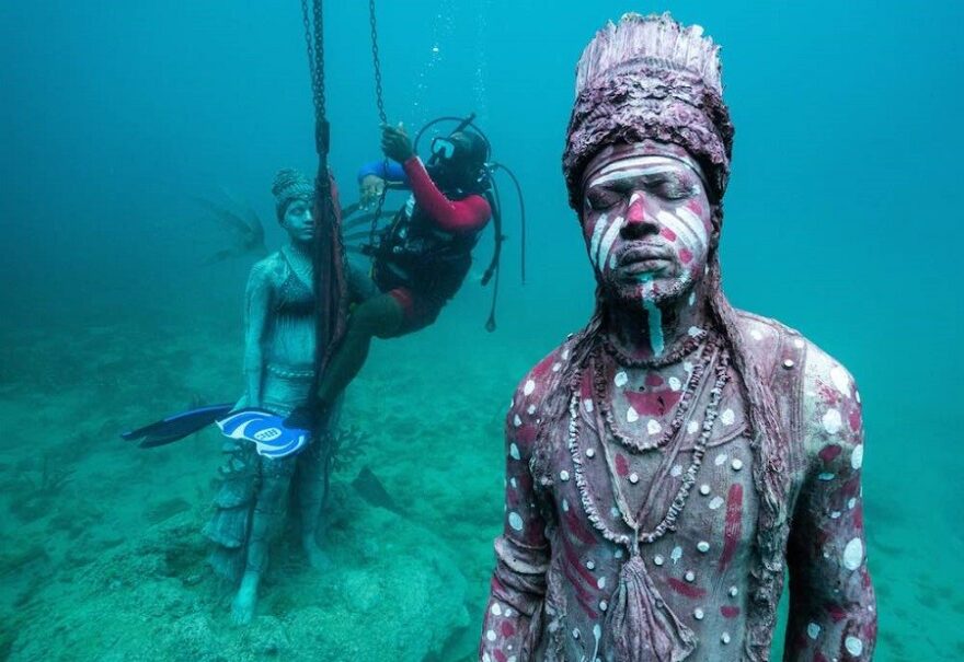 Инсталацията, известна като Coral Carnival, е създадена от Джейсън де Кайрес Тейлър в сътрудничество с екип от местни художници, черпейки вдъхновение от оживения годишен карнавал в страната, Spicemas.