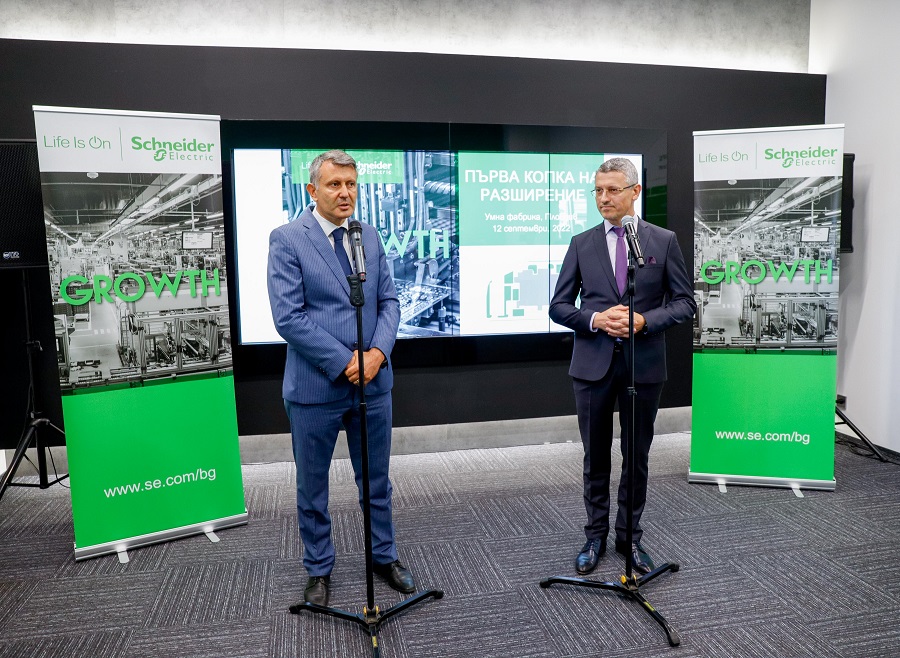 В сертифицираната Умна фабрика в Пловдив на Schneider Electric, лидер в дигиталната трансформация на енергийния мениджмънт и автоматизацията, се състоя церемонията по първа копка на разширението на завода.