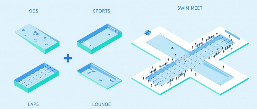 След като бъде напълно сглобен, басейнът от 9000 квадратни фута ще има определена част за деца, спорт, обиколки и излежаване. Басейнът може също така да бъде преконфигуриран в басейн за обиколка с олимпийска дължина за плувни състезания.