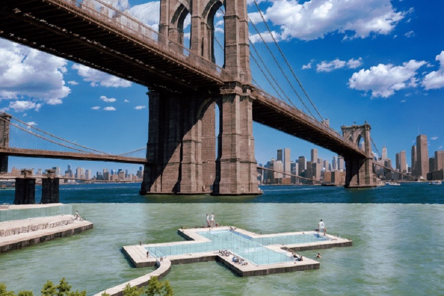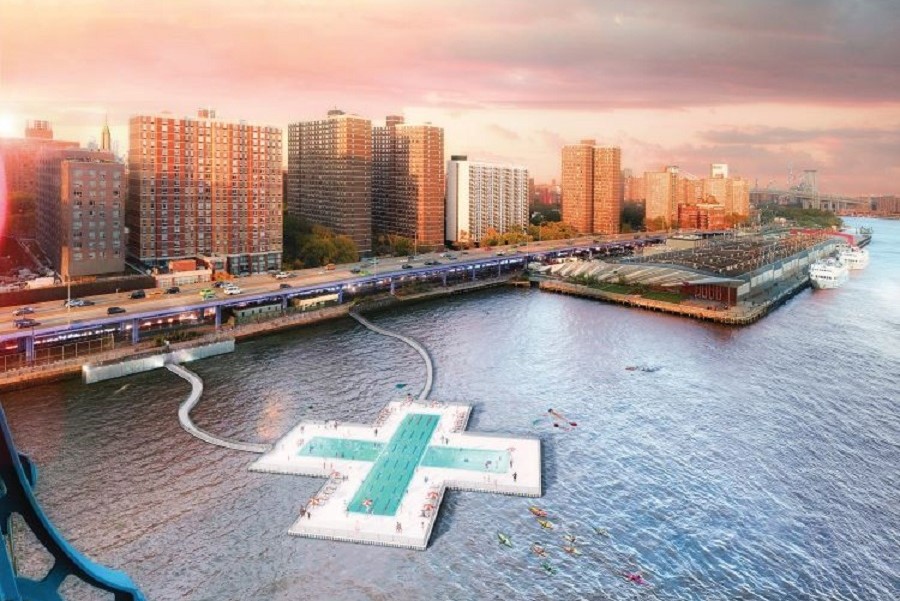 Базираната в Ню Йорк организация + POOL е проектирала плаващ басейн, който скоро може да предостави на жителите на Ню Йорк чисти и безплатни възможности за обществено плуване.