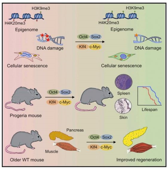 За да постигне този резултат, екипът от учени използва смес от четири препрограмиращи молекули (Oct4, Sox2, Klf4 и cMyc), за да нулира епигенетичните белези на клетките към техните оригинални модели. По този начин те по същество превръщат възрастните клетки в стволови клетки.