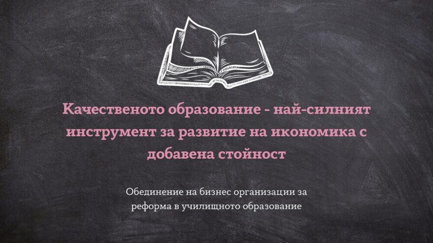Затова 25 организации, представляващи бизнеса се обединяваме в подкрепа на истинска реформа в българското училищно образование и заявяваме готовността си за сътрудничество с всички политически партии, държавни и местни институции. Нека превърнем българските училища в място, което подготвя учениците за успешен личен и професионален живот в 21-ви век.