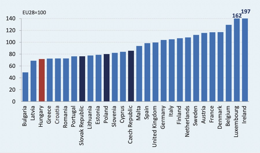 В графика, която представя данните за продуктивността на труда в ЕС, се открива тревожно положение за България. Според последните данни, нашата страна заема последното място в класацията, изоставайки от лидерите с феноменалните 49,6%. Това означава, че за да достигнем същото ниво на продуктивност като например в Ирландия, ни е необходимо да имаме 2-3 повече служители. Тези статистики подчертават необходимостта от иновативни подходи и стратегии за увеличаване на ефективността на работната сила в страната.