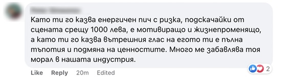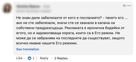 Част от аудиторията в социалните мрежи изтълкува посланието погрешно, обвързващи го с липса на морал и ценности. Това е в пълен противовес с нашите разбирания и мисията, която сме си поставили като компания. Разбираме обаче, че след като не е разчетена правилно от част от хората, посланието не е изпълнило своята цел.
