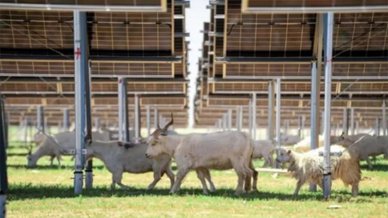 Освен това височината на стълбовете е съобразена с максималното пространство под панелите, за да могат животните да пасат и да се отглеждат култури, като по този начин се постигат и екологичните цели на проекта.