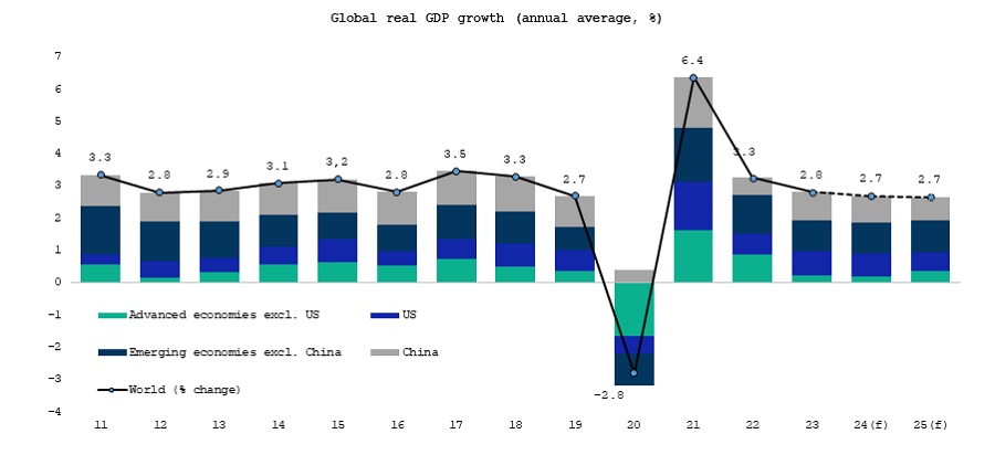 Обратно на това, в Европа се очаква растежът да бъде ограничен от предизвикателствата в производството и строителството. Въпреки намаляващата инфлация, потребителските разходи вероятно ще продължат да бъдат ограничени поради липсата на доверие на домакинствата заради политическа несигурност в няколко страни, включително Франция и Германия.