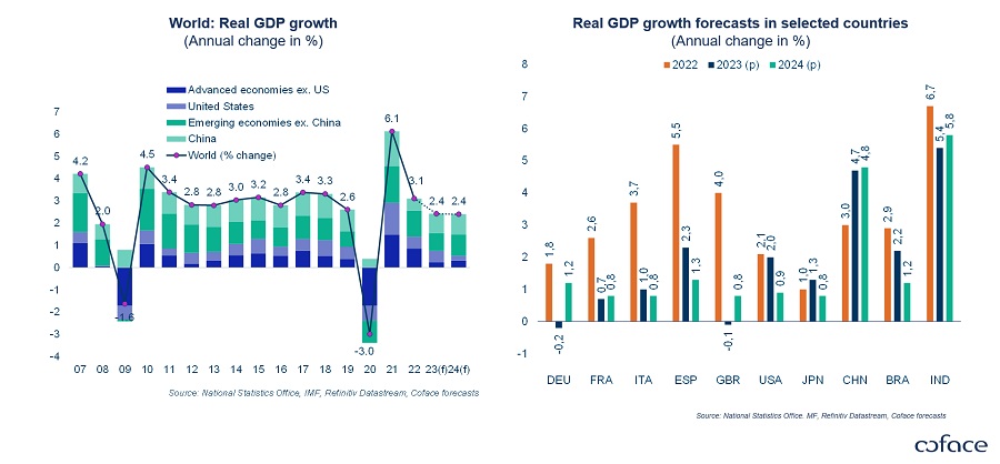 Въпреки очакванията за по-слабо икономическо представяне през 2022 г. (3,1%) покрай глобалните събития и сътресенията около тях, експертите по кредитно застраховане от Кофас отчитат по-слаб ръст на световния БВП за настоящата година – 2,4%. Предвижданията за 2024 г. са нивата на показателя да бъдат със същата или близка до тази стойност. Това стана ясно по време на регионален уебинар на тема „В очакване на възстановяване“.