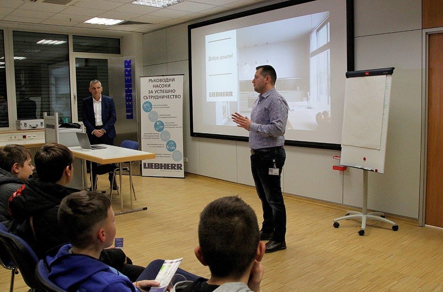 Днешният чук е лаптопът. Така образно, кратко и ясно представи съвременното производство пред родители и деца Красимир Кирков, ръководител отдел „Управление на човешките ресурси“ в „Либхер-Хаусгерете Марица“.