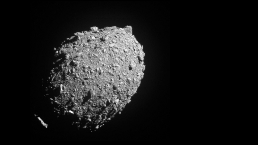 Когато DART се приближи до Dimorphus, той използва единствения си инструмент, Didymos Reconnaissance and Asteroid Camera for Optical navigation (DRACO), за автономна навигация в зоната на удара. Когато сондата се приближи до астероида, камъните и сенчестият терен излязоха на фокус.