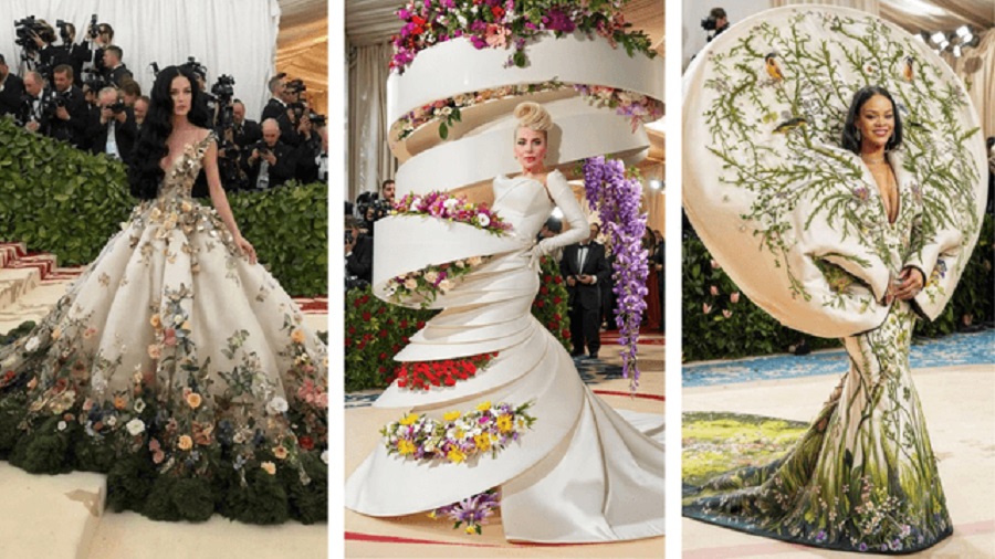 Трябва да се отбележи, че килимът в изображенията съвпада с този от събитието през 2018 г., а не със зеления килим, украсен с жива зеленина, използван тази година, за да съответства на темата на галата „Градината на времето“.