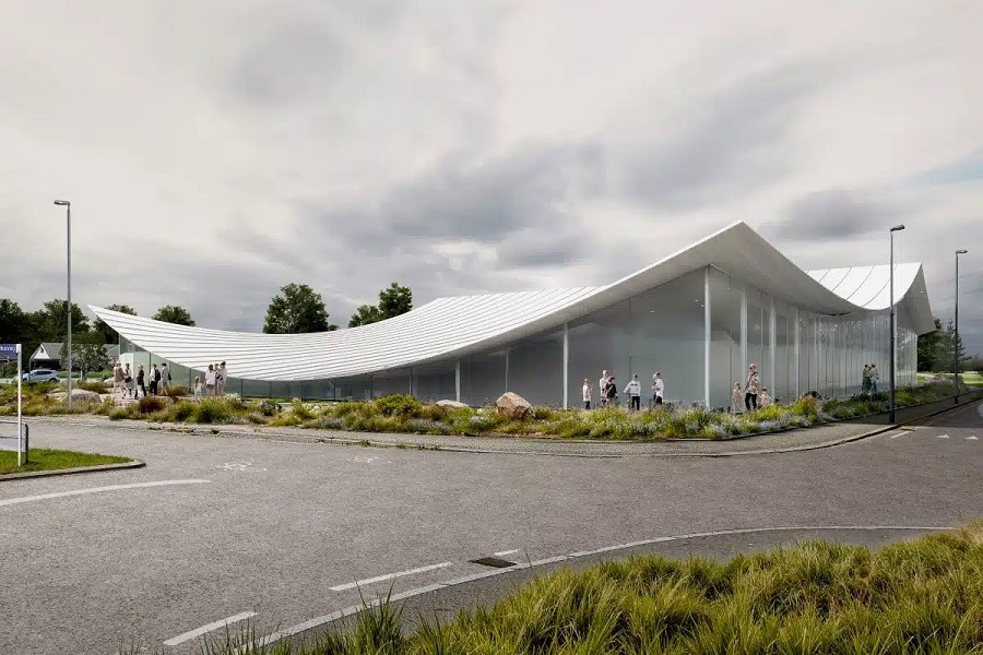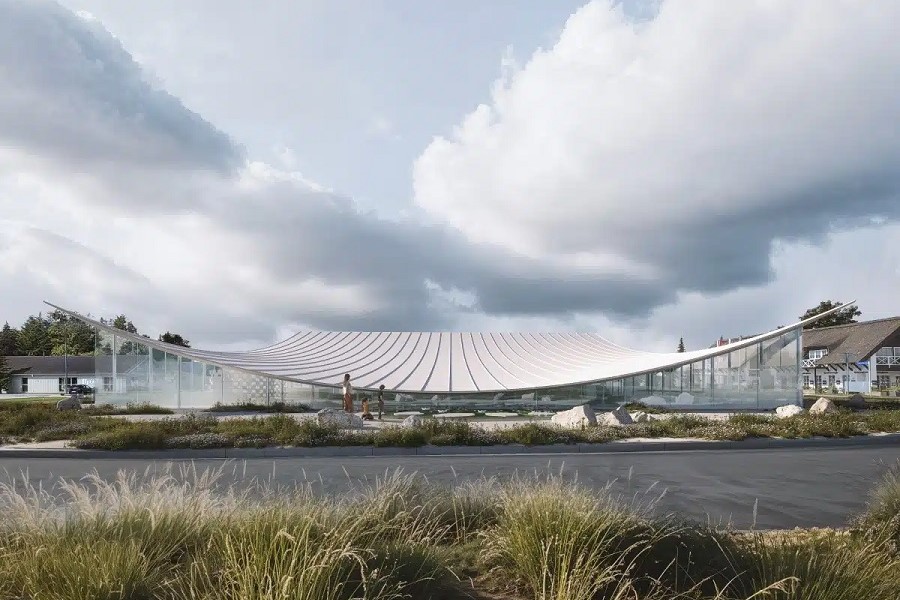 Проектът на BIG предвижда лека покривна конструкция, която прилича на един сгънат лист хартия в зашеметяваща комбинация от функционалност и естетика.