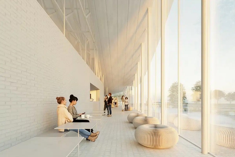 „В сътрудничество с Bit разработихме проста концепция, която позволява на един лист хартия да се разстила над площадката и съществуващата сграда. По този начин старото и новото са свързани под един покрив“, споделя Дейвид Зале, партньор в BIG. „Във фоайето и в пространството за събиране старата структура ясно се вписва в новата – единно пространство, вдъхновено от хартията и изработено от дърво.“